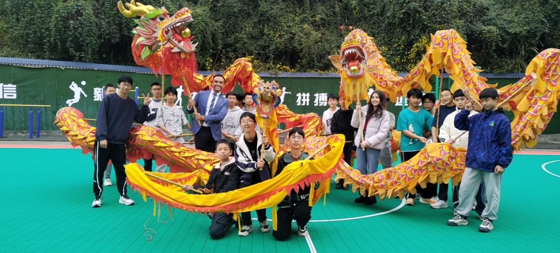 交流活动结束之后,在学校的安排下,留学生们体验了舞龙表演,随学校师生一同到当地农村体验生活,与学生们一起野炊,走访当地农户。此时的尹家镇下苏村正值油菜花开,同学们开始野餐,炊烟袅袅,一片欢腾景象。攀谈中,留学生们也切实感受到在国家“乡村振兴”政策的帮扶之下,当地农户的生活确实有了显著提高。一些农户在各种有利政策的帮助下,将自己的子女培养成了大学生,逐步改变了家乡的面貌。