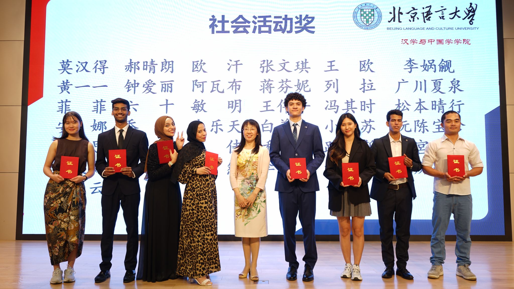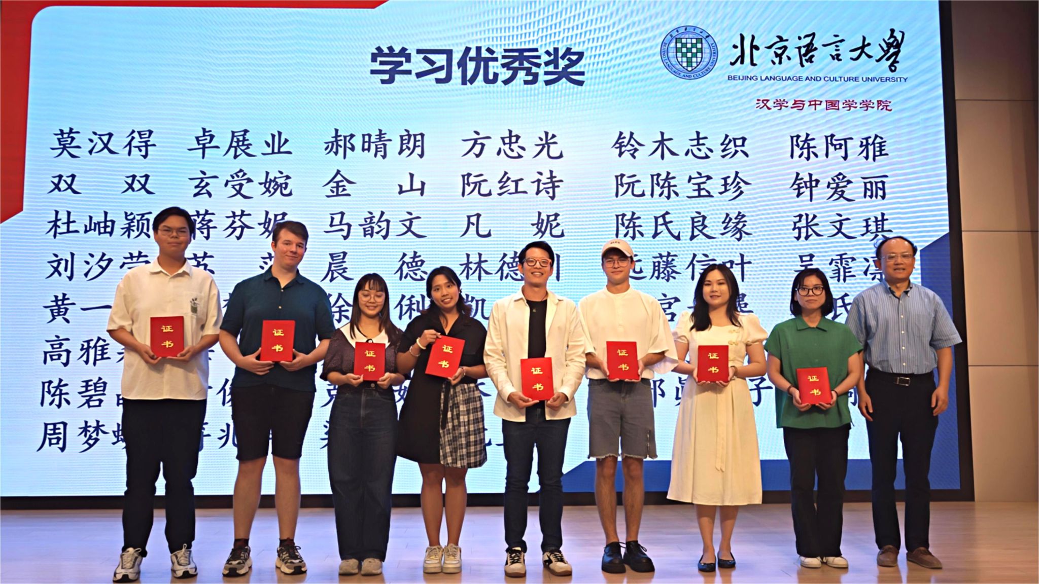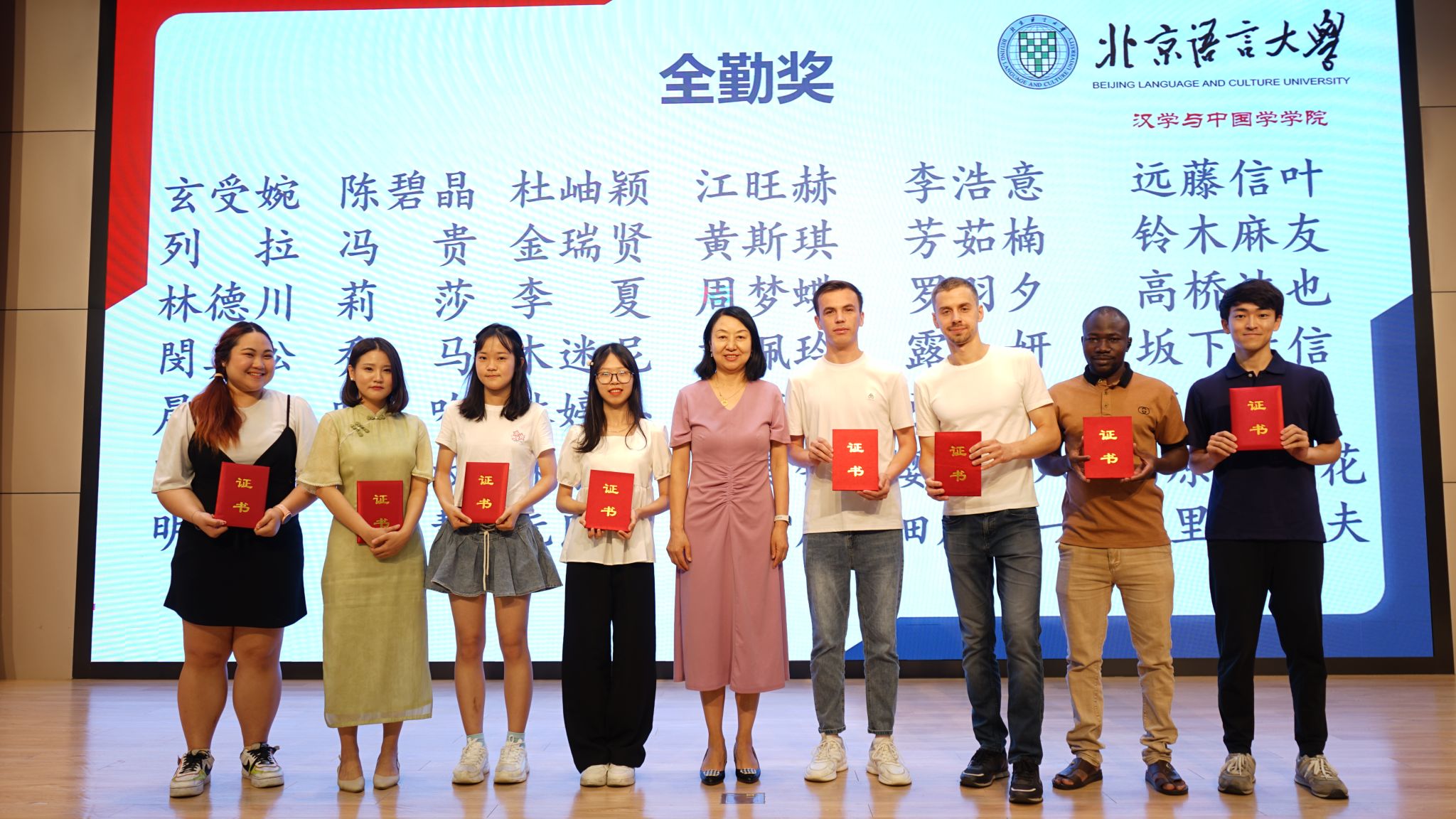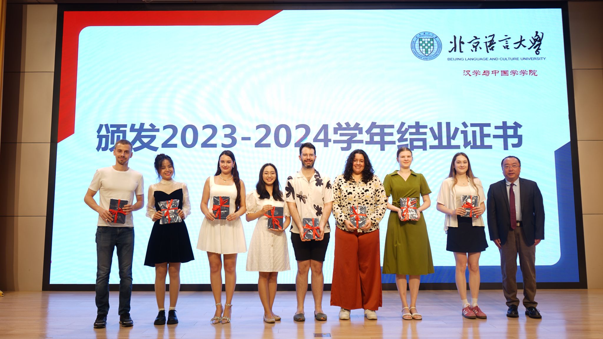 汉学与中国学学院2023—2024学年结业式在教一楼209报告厅隆重举行。校长助理、研究生院院长郭鹏,汉学与中国学学院党委书记马铁石,副院长(主持工作) 李萍,副院长牟世荣,党委副书记陈蕾及学院全体教师,与来自126个国家的300多名结业生以及家长代表齐聚一堂,共同见证这场青春盛典。仪式由李萍副院长主持。