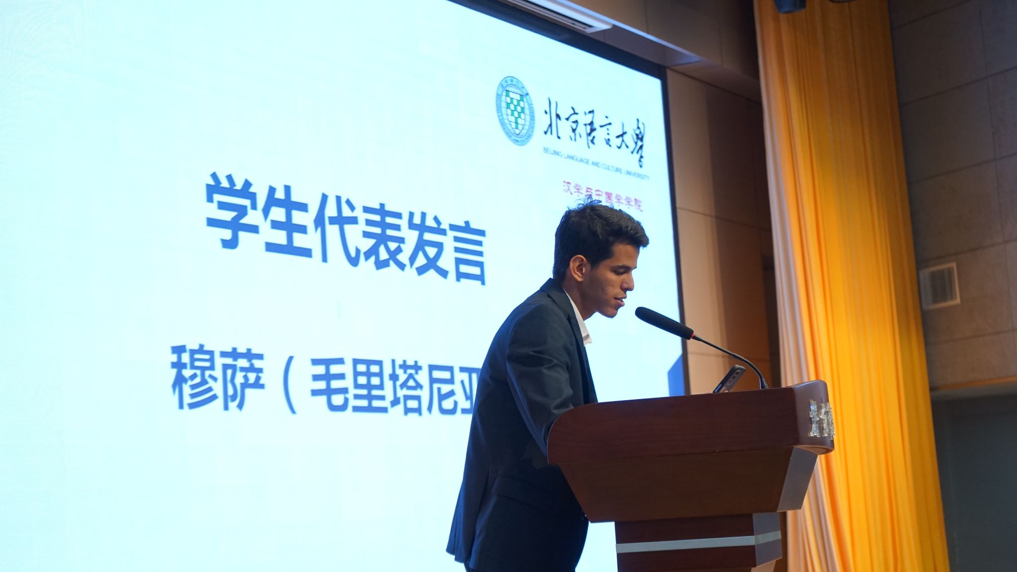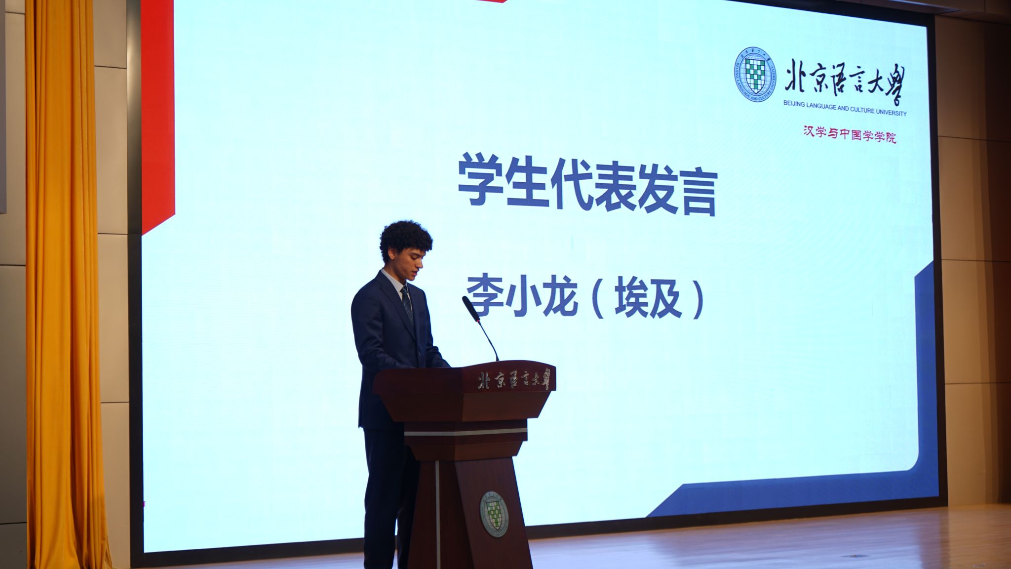 来自毛里塔尼亚的穆萨同学、来自英国的乔马同学和来自埃及的李小龙同学作为结业生代表发言。他们对学院、对老师们表示了衷心感谢。感谢汉学与中国学学院为同学们开启了一扇通往世界的窗,帮助大家在求知和探索中跨越文化的界限,取得了巨大的成就;感谢老师们的辛勤教诲,让同学们一句句学会了中文,一点点了解了中国文化,一步步实现了自己的梦想。