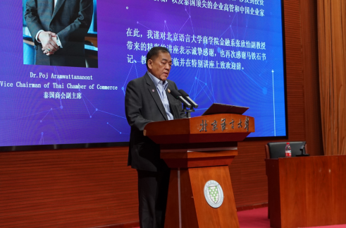 汉学与中国学学院马铁石书记在致辞中提到,中泰两国有悠久的友好合作历史,双方的合作在各个领域中都卓有成效,是中国与东盟国家合作的典范。双方在教育领域的合作成果丰硕,富有实效。他期望汉学与中国学学院未来能为泰国培养出更多的高端汉学及中国学领域的人才,发挥出他们服务两国合作的重要作用。马铁石书记还希望能在继续办好中泰高层管理项目的基础上,未来逐步形成双向互动的局面。在安排泰方高级商务人士在汉学与中国学学院参加讲座的同时,也邀请泰方代表给北语学生做商业领域实际操作的报告,以他们丰富的从商经验、敏锐的商业视角,给北语中外学生带来新的思考,相信此类活动一定能取得良好的效果。
