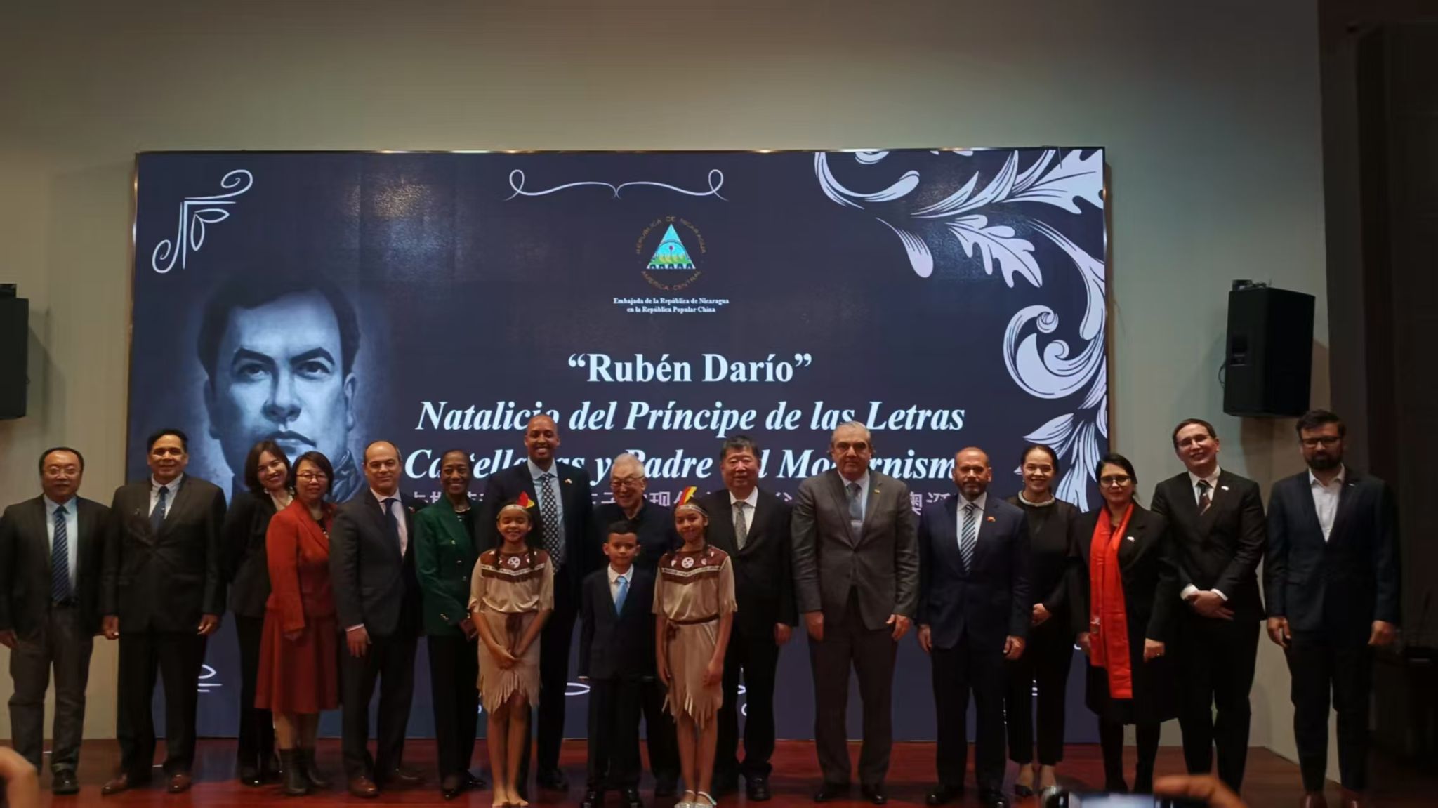 1月22日“卡斯蒂利亚文学王子和现代主义之父鲁文·达里奥诞辰”纪念活动在位于北京大兴区的“北京中拉文化交流中心”成功举办。我校汉学与中国学学院党委书记马铁石及拉美语言文化中心孙海诚教授应邀出席了本次活动。部分拉美国家驻华大使馆使节及其他友好单位参加了本次中拉文化交流活动,就双边多领域合作进行了友好交流。