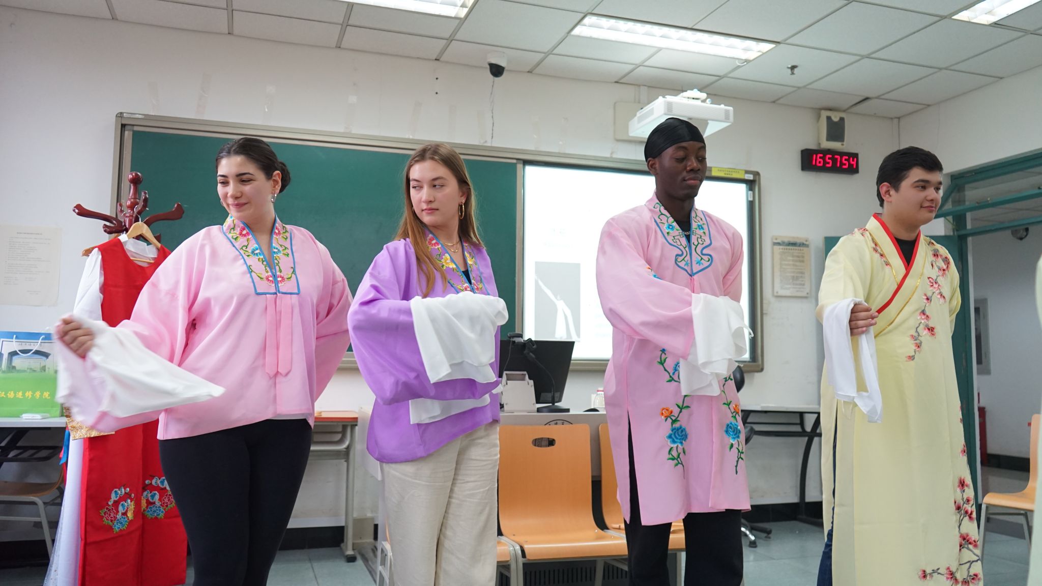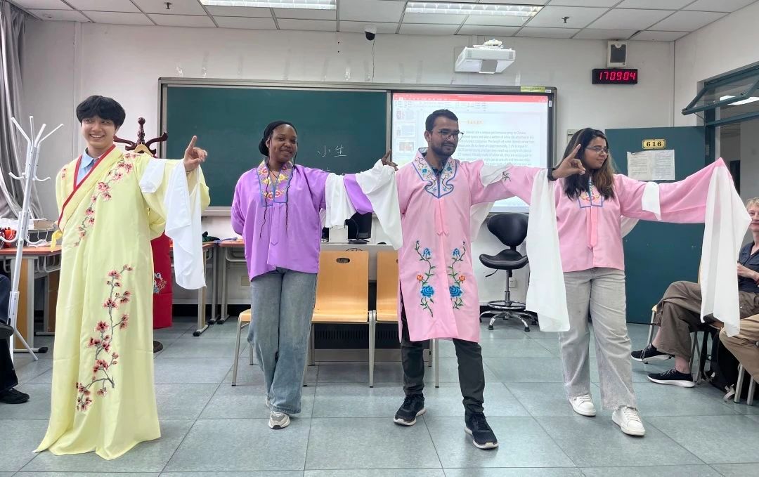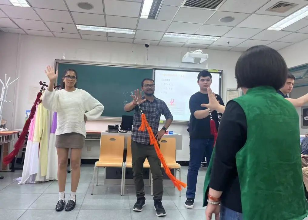 4月15日,汉学与中国学学院举办了一场趣味盎然的中国文化体验课程——中国传统戏曲体验课。本次体验课聚集了三个班级的留学生,他们来自不同国家和地区。通过介绍戏曲知识以及亲身体验戏曲艺术,课程为他们展示了中国传统文化的独特魅力,带来了一场别开生面的文化之旅。