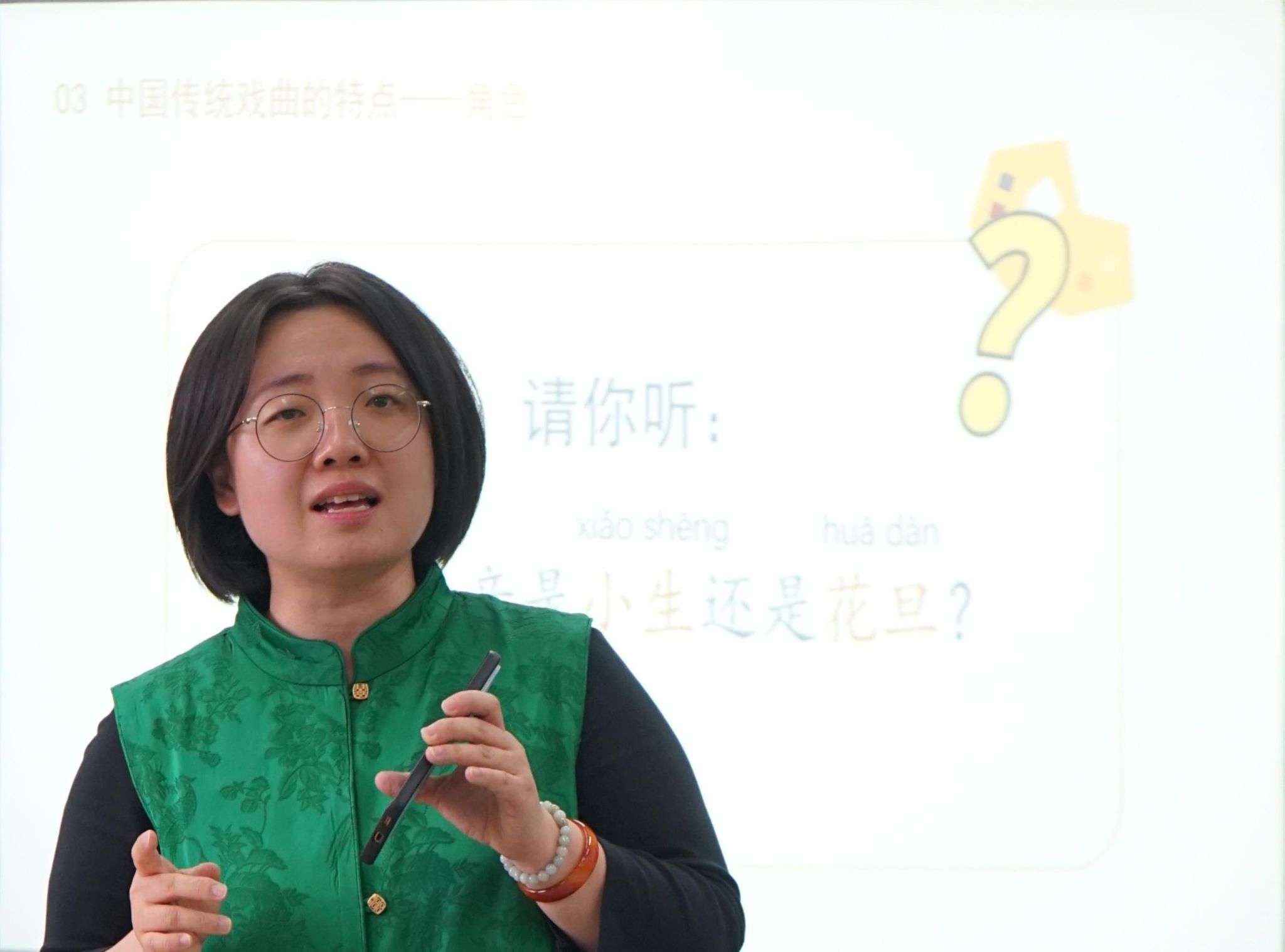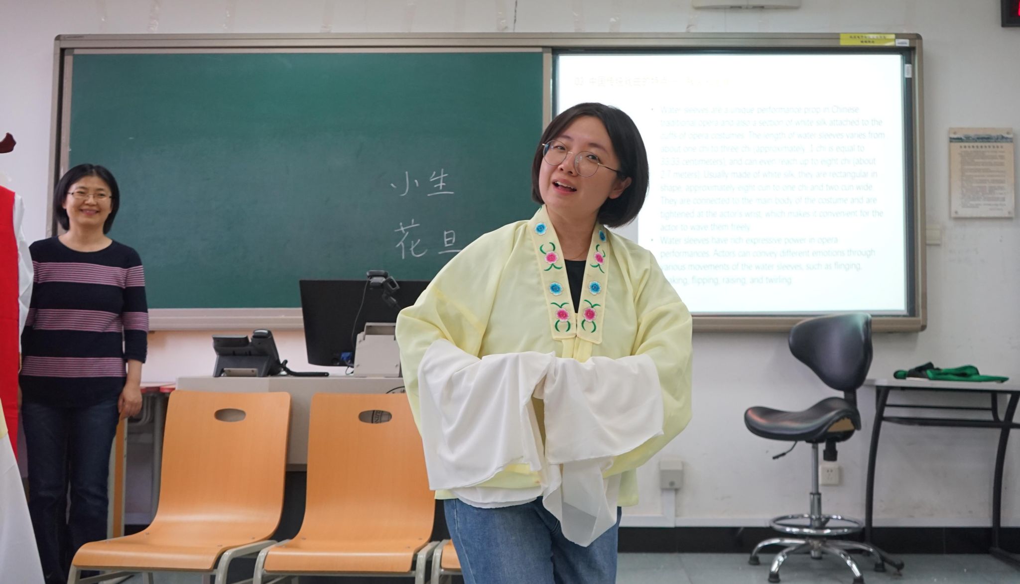 在讲解中,李琳老师亲身示范了小生与花旦的唱腔,让同学们直观感受到戏曲之美及其唱腔的区别。