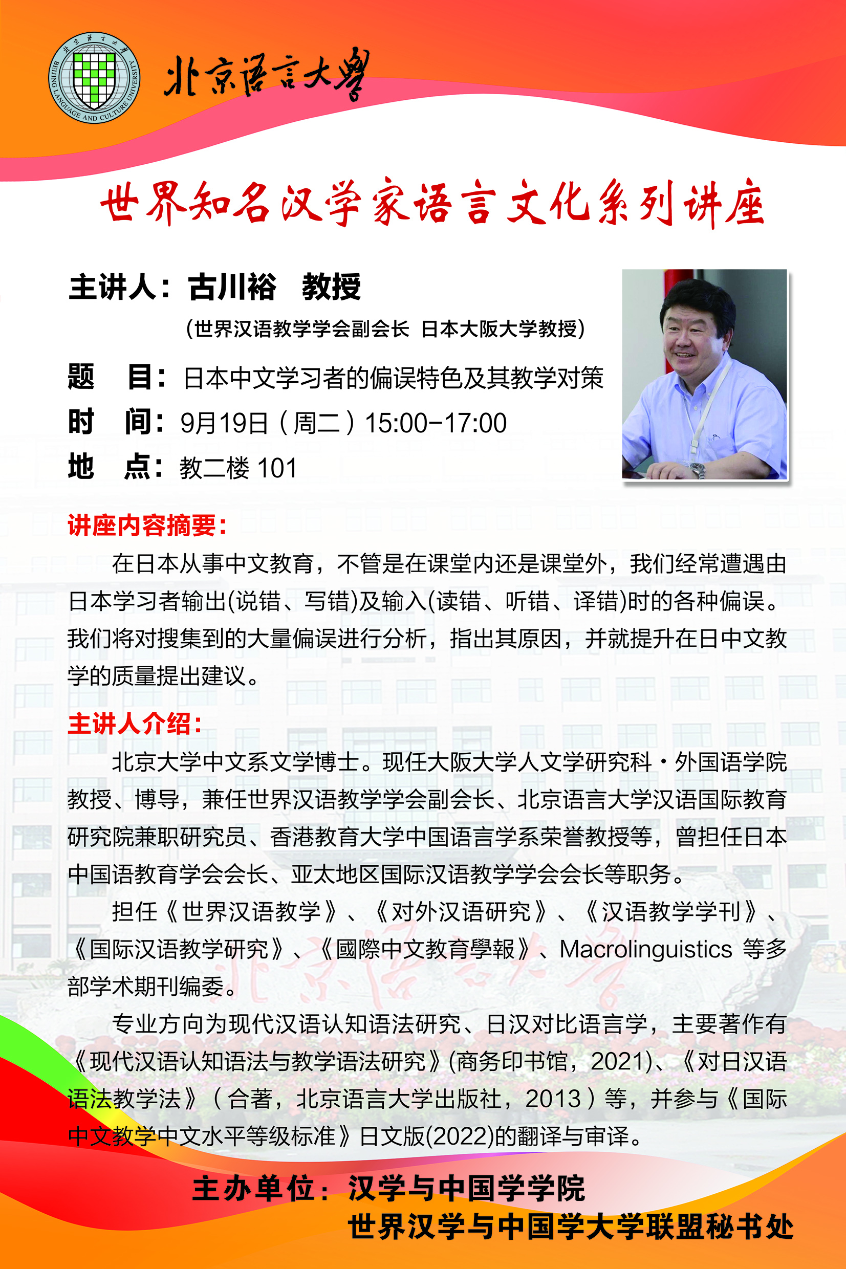 主讲人:古川裕 教授 (世界汉语教学学会副会长 日本大阪大学教授)